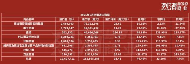 海关总署近期公布了2025年6月的烈酒进口数据趣投顾,至此烈酒上半年进口数据已完整出炉。